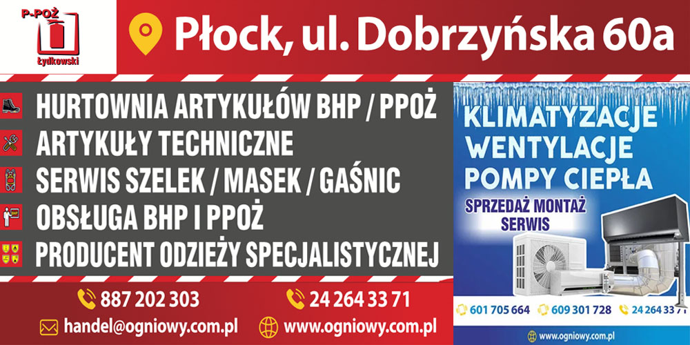 Mamy przyjemność przedstawić Państwu ofertę z zakresu ochrony przeciwpożarowej oraz bezpieczeństwa i higieny pracy Zapewniamy: profesjonalizm, kompleksowość usług oraz krótkie terminy realizacji zleceń. Nasza oferta zawiera szeroki asortyment odzieży roboczej i specjalistycznej, środki ochrony pracy, sprzęt ochrony przeciwpożarowej i oznakowania. Proponujemy również usługi w zakresie serwisu gaśnic i hydrantów, biernych i czynnych systemów bezpieczeństwa tj. instalacji oddymiających, sygnalizacji pożaru, detekcji gazu oraz stałych systemów gaśniczych i zabezpieczających.   Opracowujemy dokumentacje przeciwpożarowe oraz szkolimy w zakresie BHP i ochrony przeciwpożarowej. Współpracujemy z wieloma producentami, którzy zlecili nam przedstawicielstwo w zakresie: handlu, montażu oraz serwisu systemów bezpieczeństwa przeciwpożarowego a także z rzeczoznawcą d.s. ppoż, inspektorami nadzoru różnych branż, elektrykami i innymi specjalistami. Posiadamy ponad 15-letnie doświadczenie w realizacji różnych projektów i zleceń, które Państwo nam powierzyliście. Współpracujemy z ponad 500 podmiotami gospodarczymi. Realizujemy kompleksowe zlecenia przeciwpożarowe, począwszy od uczestnictwa w projekcie, montażu systemów ochrony przeciwpożarowej oraz prób funkcjonalnych, skończywszy na dokumentach odbiorowych. Takie wykonywaliśmy m.in. dla: Galerii handlowej „Wisła", Galerii handlowej „ Mosty", Kina Przedwiośnie, Teatru Dramatycznego w Płocku, obiektów przemysłowych (w tym zagrożonych wybuchem).